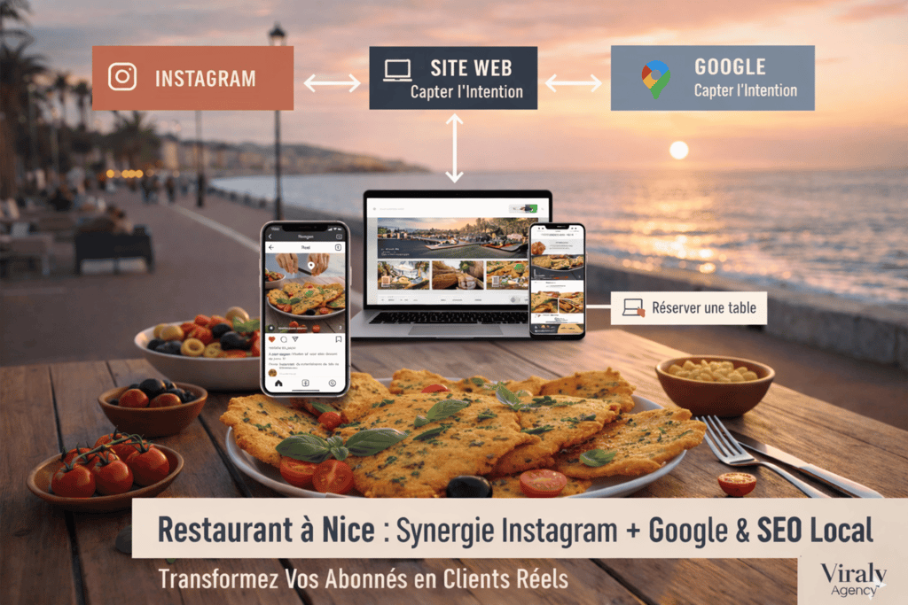 Découvrez comment un restaurant à Nice peut combiner Instagram, Google Maps et un site web optimisé SEO pour attirer plus de clients et remplir sa salle. Une stratégie locale signée Viraly Agency, experte du marketing digital sur la Côte d’Azur.